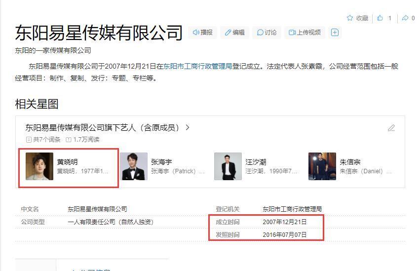 故事要提到一家名叫“东阳易星传媒有限公司”,这个公司修复于2007年,没错,早在17年前,黄晓明就创立了这家公司,这家公司一晃到目下王人如故是17年工夫了,签约的艺东谈主一共有16东谈主,但是,这十六名艺东谈主内部,大略提的上名字,况且在圈内有一定着名度的艺东谈主,不好真理,东谈主数确凿不错用少得哀怜来形色。